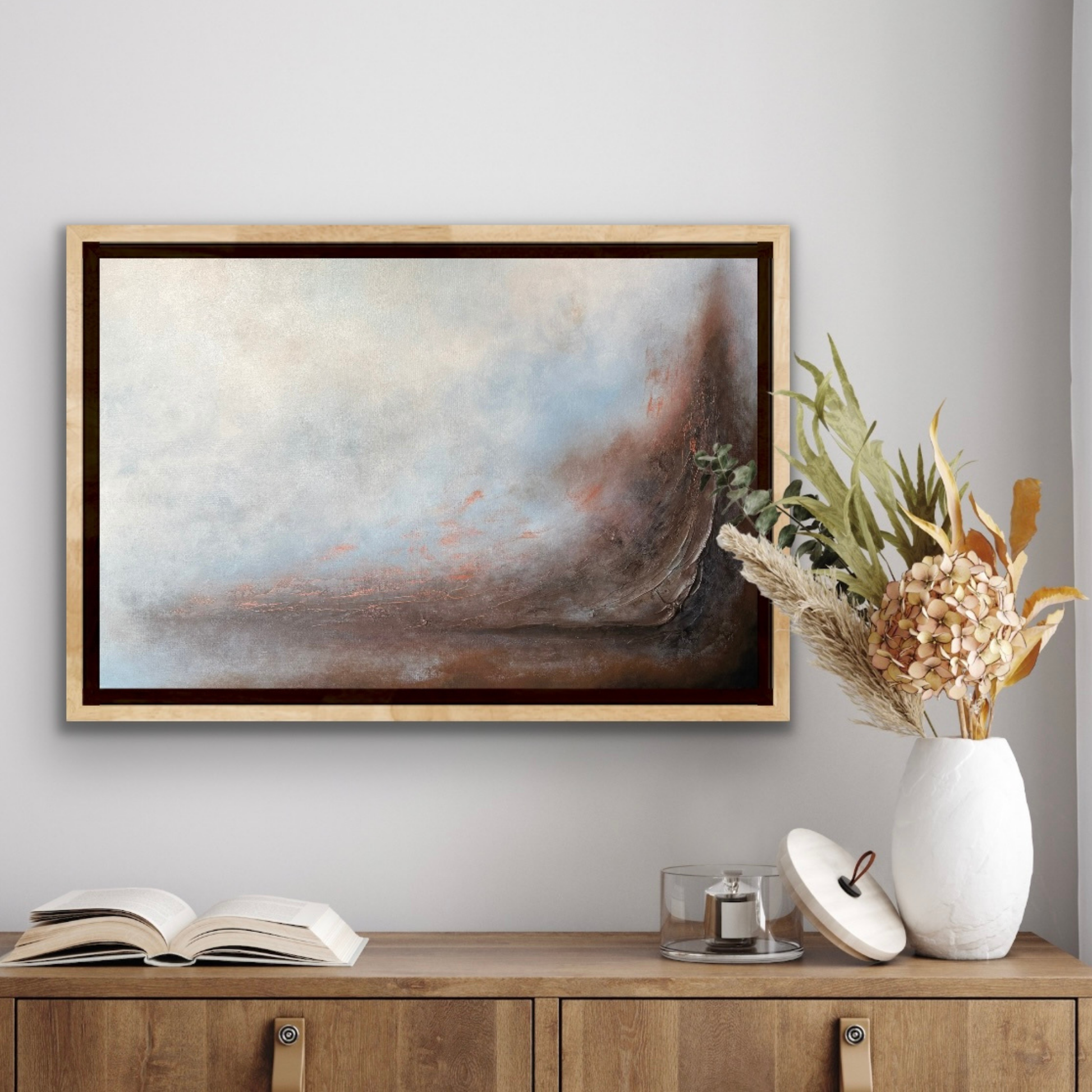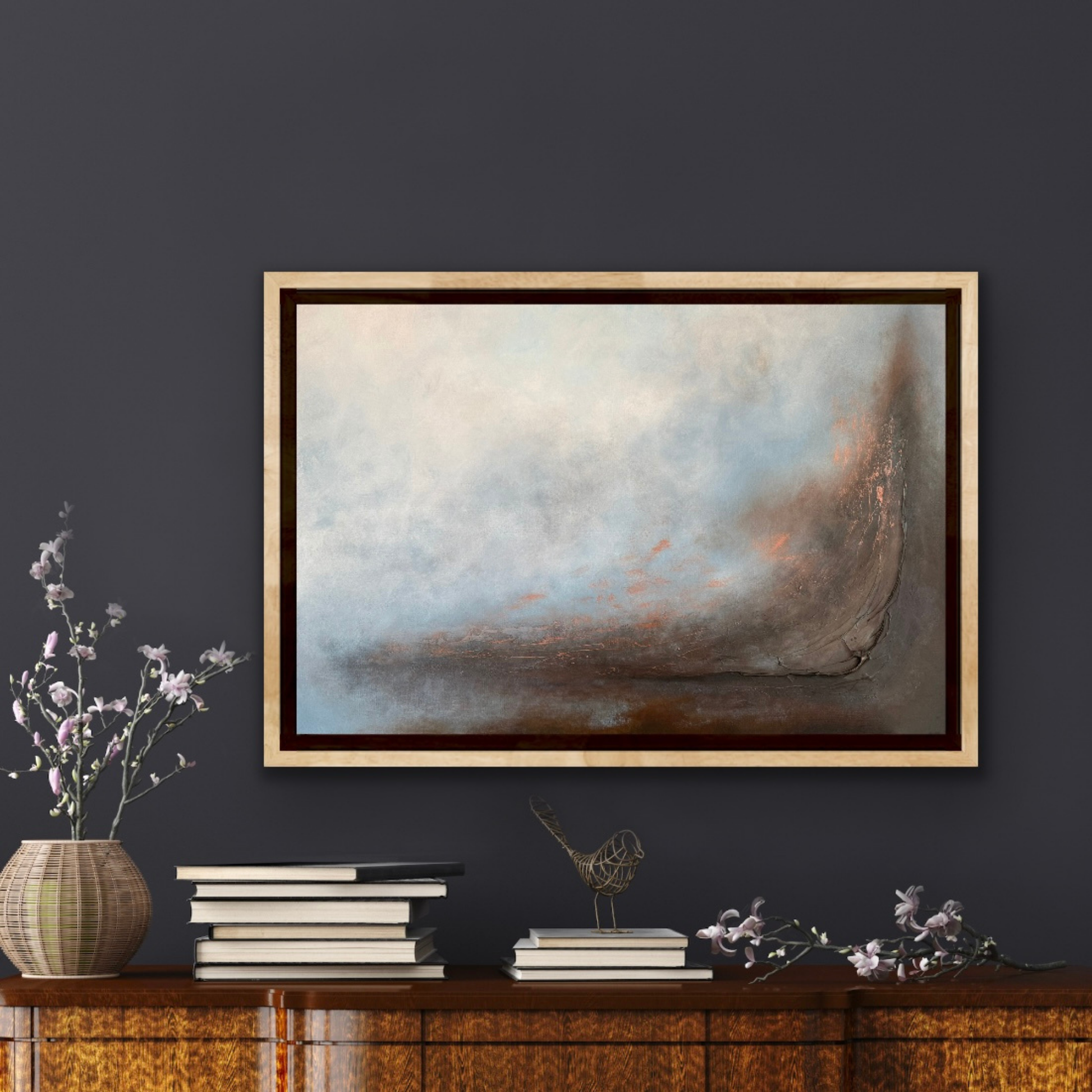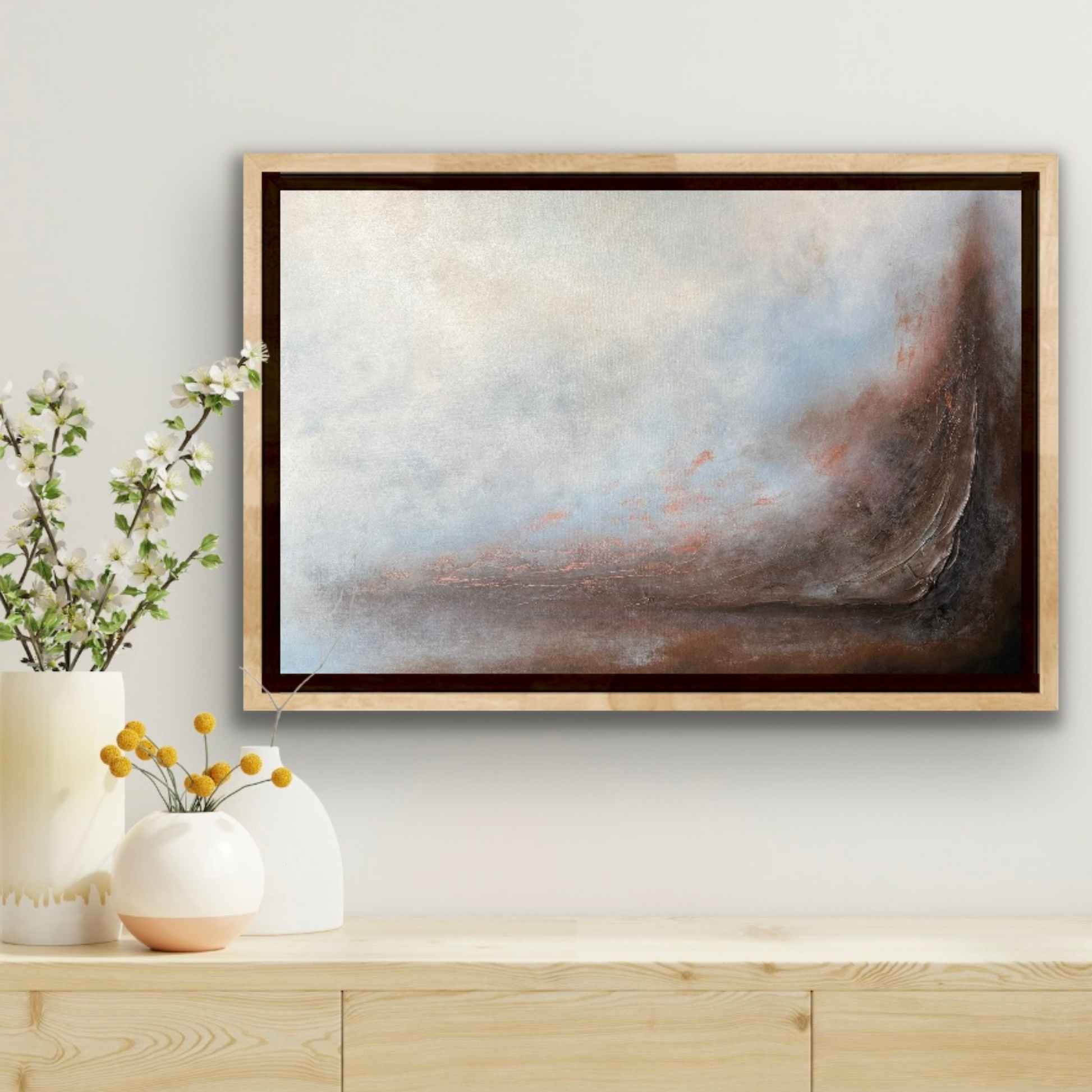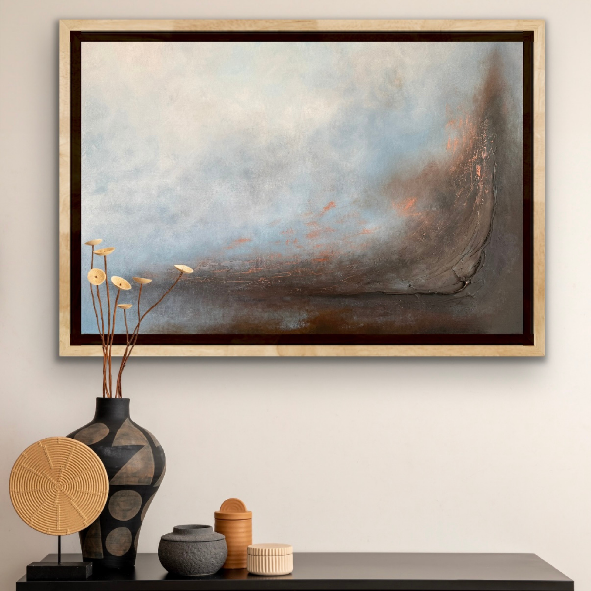 Expressive and emotive, this artwork evokes the feeling of a fleeting horizon - a quiet moment where light lingers and transforms the landscape. A timeless piece that brings warmth and calm to any space.